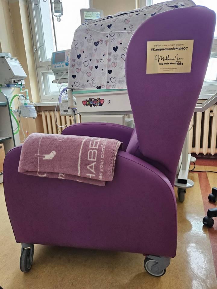 Komfortowe, szerokie i w pełni funkcjonalne – a do tego fioletowe, czyli w barwach wcześniaków. Trzy nowe fotele do kangurowania noworodków trafiły do Wojewódzkiego Szpitala Zespolonego w Skierniewicach dzięki darowi fundacji Matkowe Love. Ustawiono je przy inkubatorach oraz na salach dla wcześniaków i noworodków.