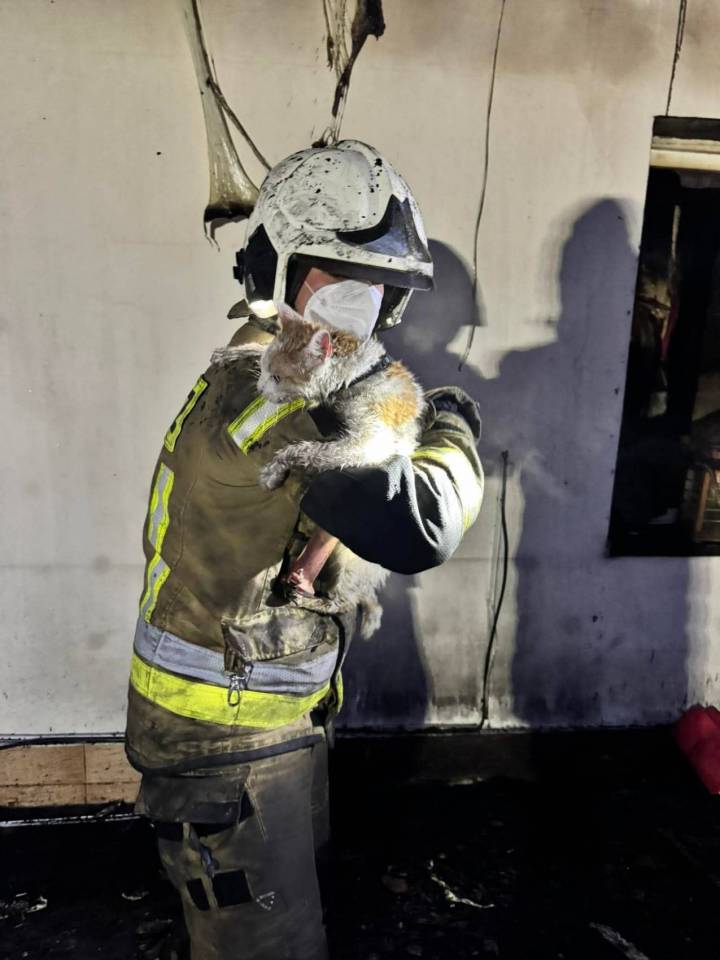 Nie zdążyły uciec przed ogniem, strażacy wynieśli je z płomieni. Druhowie z OSP Ujazd uratowali kota, psa i żółwia [Foto]