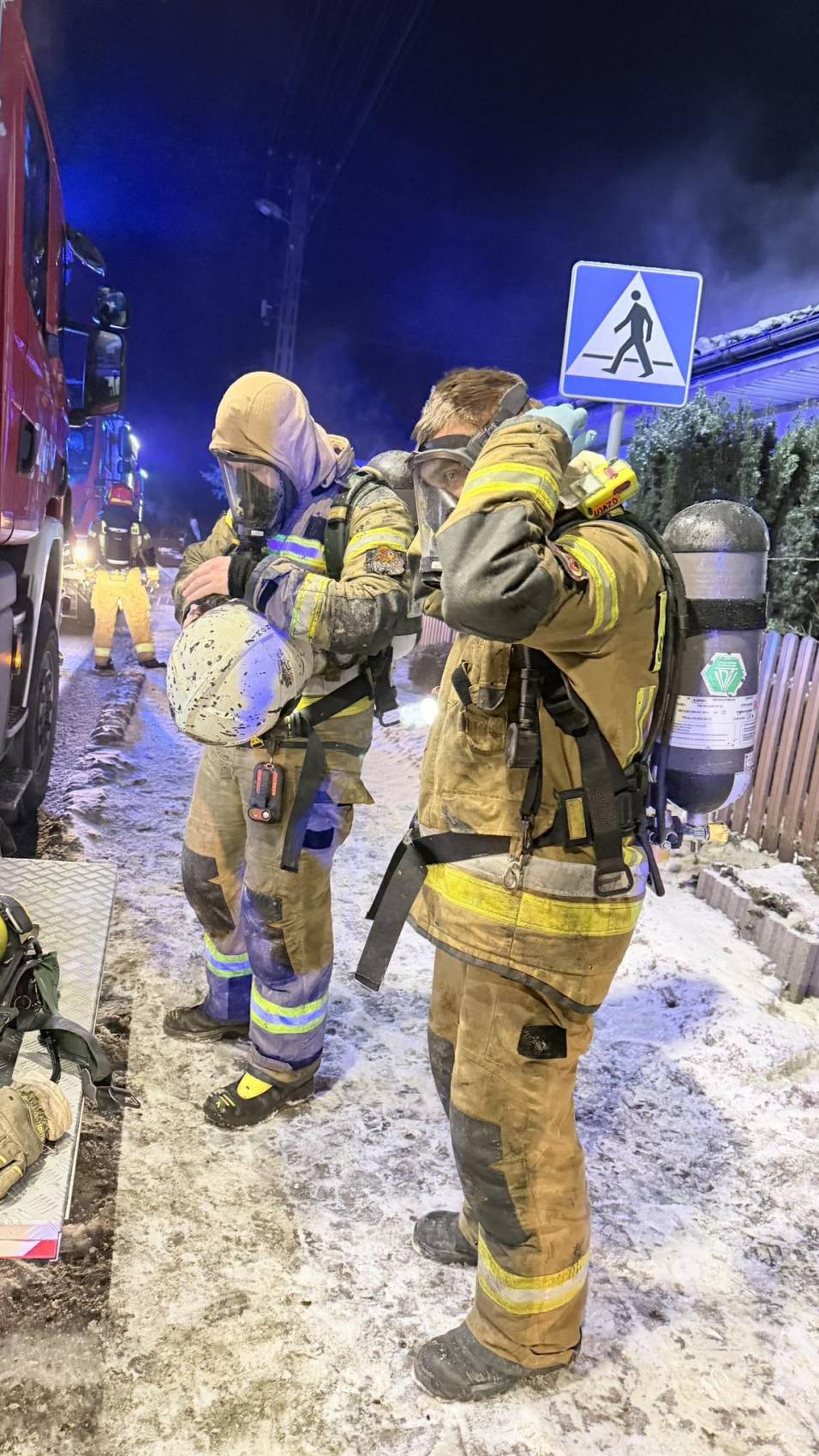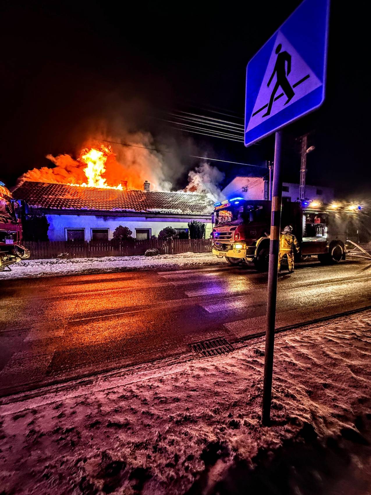 Dramatyczne chwile rozegrały się nad ranem 24 stycznia w Ujeździe w powiecie tomaszowskim. Około godziny 4:00 wybuchł pożar domu jednorodzinnego. Mieszkańcy zdołali ewakuować się jeszcze przed przyjazdem strażaków, jednak w płonącym budynku pozostały ich zwierzęta. Dzięki determinacji druhów udało się je wynieść.