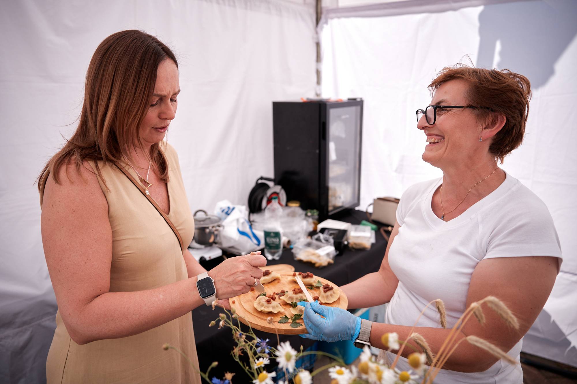 Wśród wystawców było wiele KGW oraz producentów regionalnej, tradycyjnej żywności. Ich stoiska kusiły pierogami z różnorodnym farszem, żurkiem na prawdziwym zakwasie, rzemieślniczymi serami czy domowymi przetworami. Smaki i aromaty przyciągały gości jarmarku a produkty oraz potrawy błyskawicznie znikały. - Wystawialiśmy się dzisiaj ze świeżonką, bigosem i pierogami z mięsem i kapustą, mamy też duży wybór ciast. Jest bardzo duże zainteresowanie, bardzo dużo chętnych, świeżonka już się skończyła – przyznał ok. godz. 16 Norbert Dudek z KGW Pod Lipami z Koła w pow. piotrkowskim. Gospodynie z KGW Chorki z pow. łęczyckiego do Łodzi przyjechały z prażokami, karkówką w sosie i żurkiem chorkowskim. Jak zdradziła Dorota Suchocz z koła, zupa jest robiona według bardzo starego przepisu przekazywanego z pokolenia na pokolenie. – Podstawą jest zakwas chorkowski z mąki żytniej z dodatkiem skórki chleba, kisi się go 7 dni – mówi.
