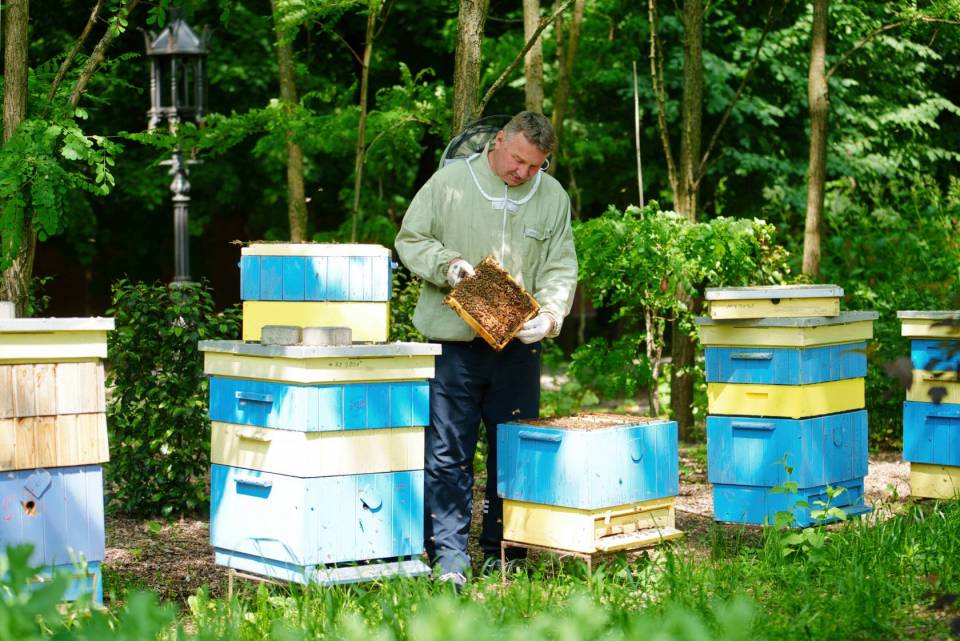 – Pszczoły to taka działalność po godzinach, w międzyczasie – żartuje, ale pszczoły traktuje bardzo poważnie. W ocenie lekarza weterynarii, pasieka Na Wzniesieniach Łódzkich jest jedną z lepiej utrzymanych. Pan Piotr bardzo dba o swoje rodziny, regularnie objeżdża ule i… rozmawia z pszczołami. – Tak, rozmawiam z psiulkami, cały czas, a najczęściej jak mnie żądlą – przyznaje ze śmiechem.
